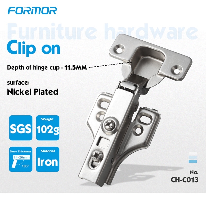 Hooked Clip On Base With Zinc Alloy Clip:Designed with a hooked clip on base and zinc alloy locking clip, the hinge allows quick installation and secure fixing. The metal clip is more durable than plastic parts, ensuring reliable performance during repeated assembly and adjustment.